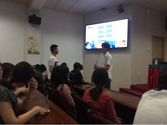 随后,徐磊就武汉药明康德进行了介绍。武汉药明康德,是湖北省服务外包重点企业,武汉市生物医药服务外包领军企业,现有1500名员工,2人入选国家千人计划,20名资深海归。针对同学们关心的薪酬问题,徐磊介绍了药明康德全面的薪酬福利体系,特别解读了药明康德特有的“成就激励机制”。他强调,“药明康德有着“不拘学历、唯才是用”晋升制度”,并为在职员工提高完善的培训机制,帮助员工成长进步。最后,徐磊针对同学们关心的待遇、假期问题做出了答复。