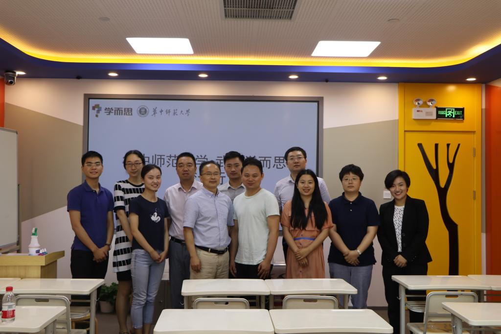 学而思武汉分校校长周斌、教学部主管李博、师资选聘部主管黄俊欢及华师数统学院校友赵爽老师出席了本次校企行。本次校企行共分为三个环节:校企交流、企业参观、课程体验。